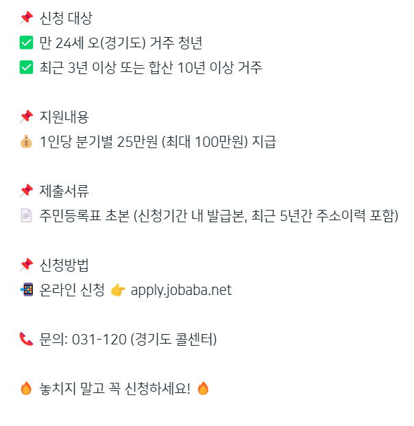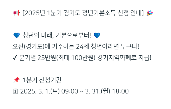 이상으로 2025년 1분기 경기도 청년기본소득 신청에 대한 주요 정보와 활용 팁을 알아봤습니다.