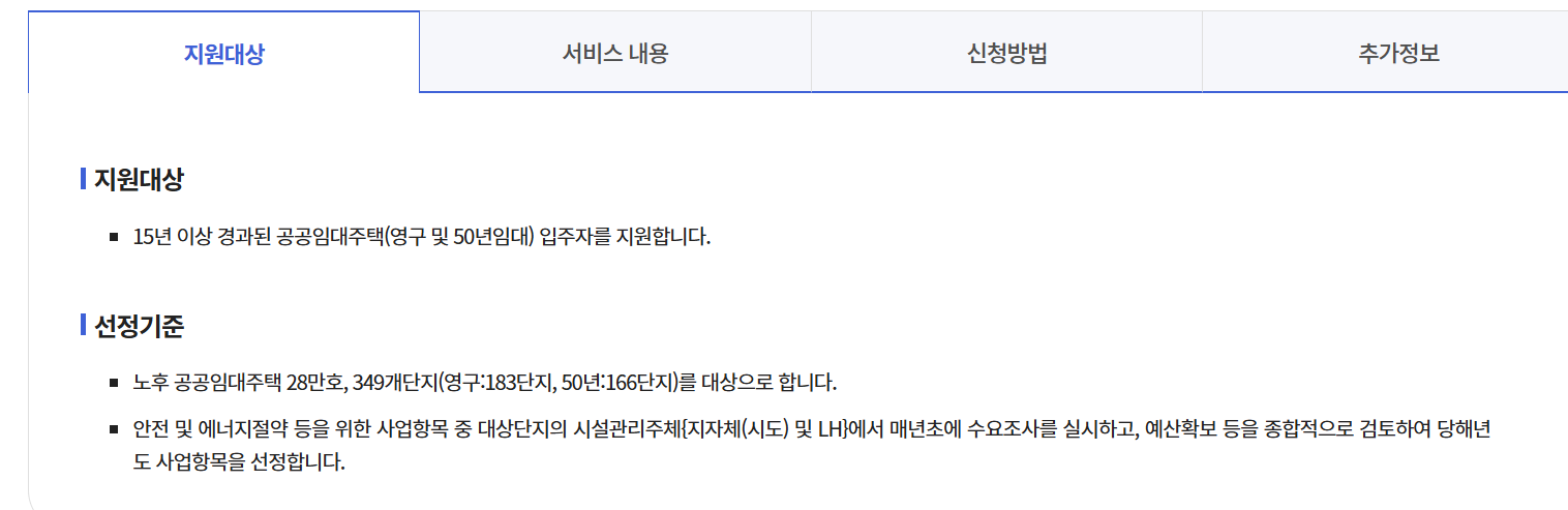 • 재정 지원 및 보조금: 국비 및 지방비를 투입하여 개보수 공사 비용을 보조합니다.