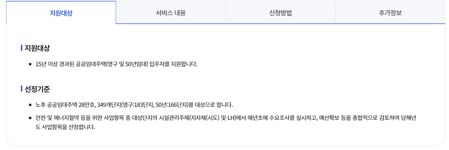 - 재정 지원 및 보조금: 국비 및 지방비를 투입하여 개보수 공사 비용을 보조합니다.