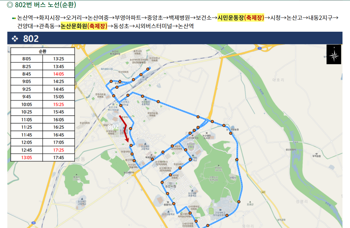 - 논산역에서 행사장까지: 버스나 택시로 10~15분 정도 소요됩니다.