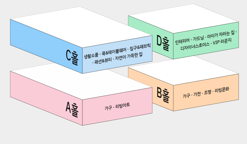 서울디자인리빙페어는 다양한 카테고리의 디자인 제품들이 전시됩니다. 주로 다음과 같은 섹션으로 구성됩니다: