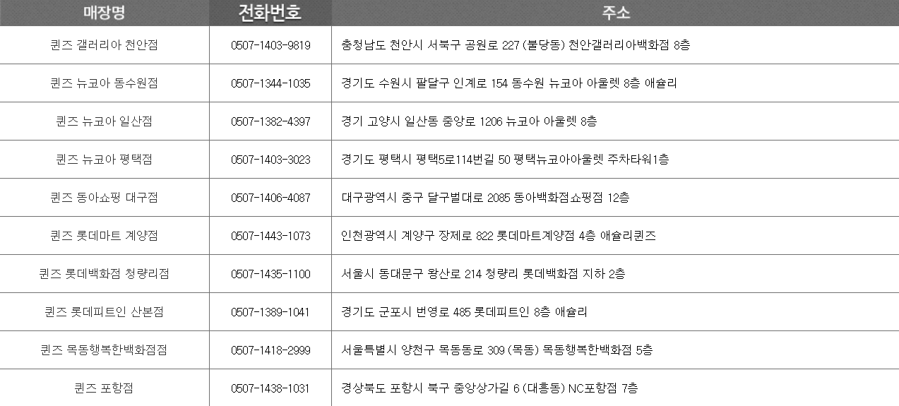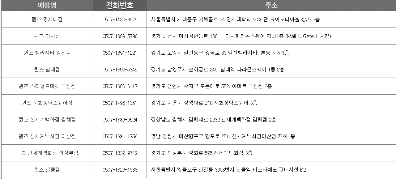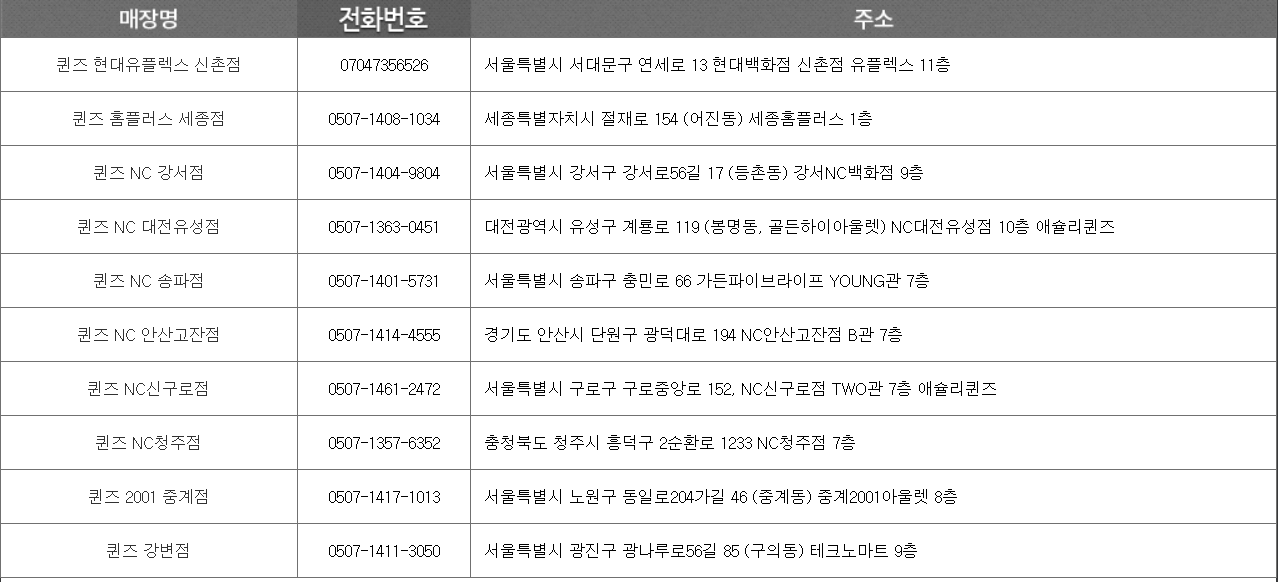 • 서울: 강남역점, 홍대점, 잠실점