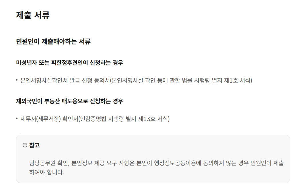 - 해외 거주 시: 해외에 있다면 재외공관(영사관 등)에서 인감증명서를 대신 발급받을 수 있도록 마련된 절차가 있으니, 상황에 따라 해당 기관과 먼저 연락을 취해 보세요.