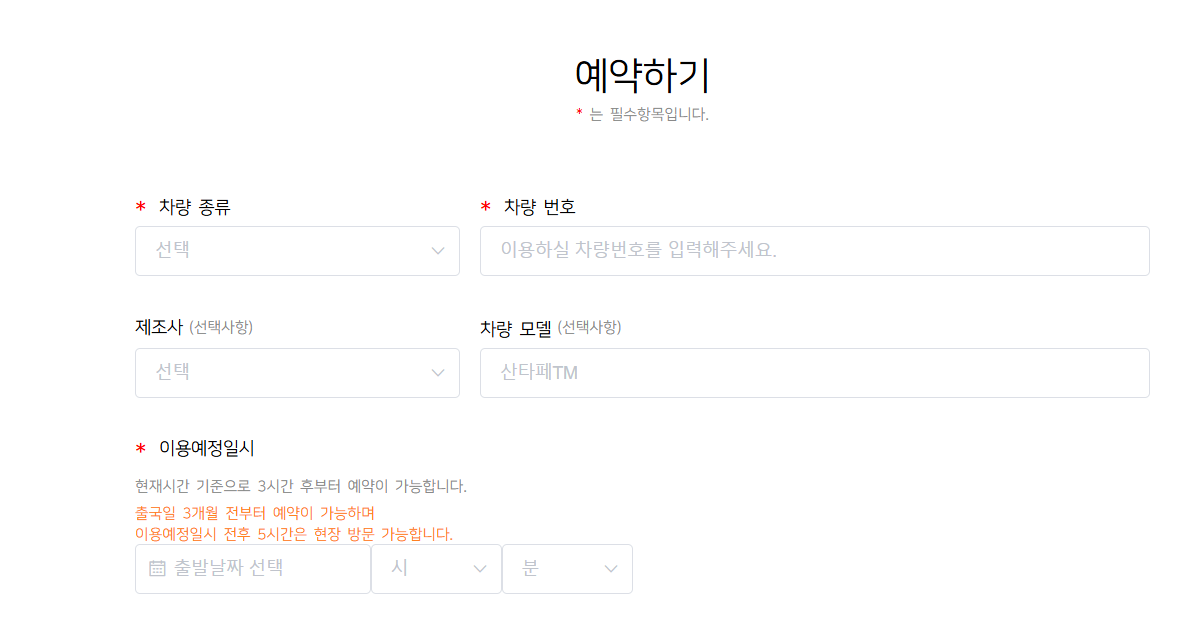 - 예약 날짜, 차량 정보, 연락처 입력