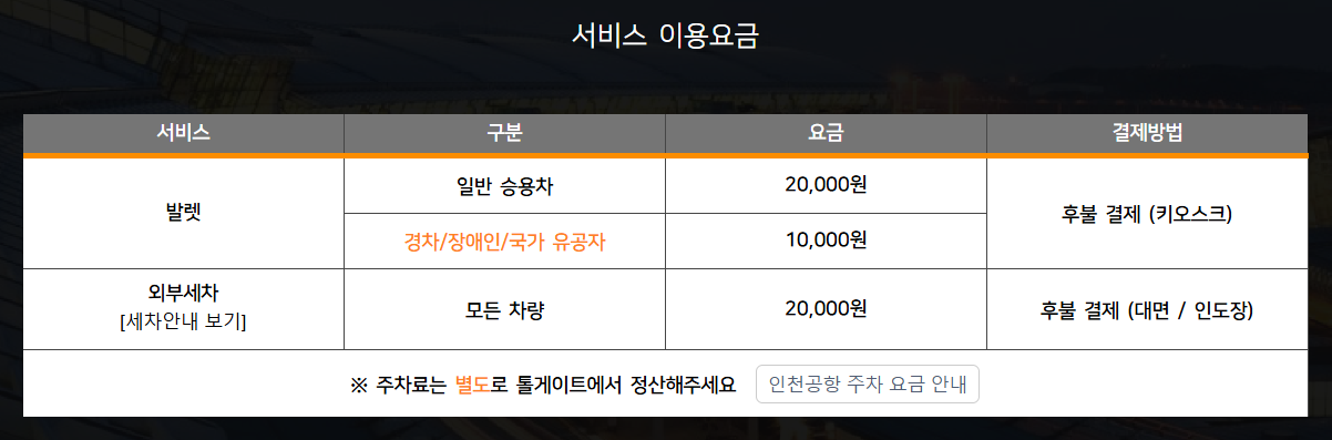 인천공항 1여객 터미널 주차대행 서비스 이용 방법