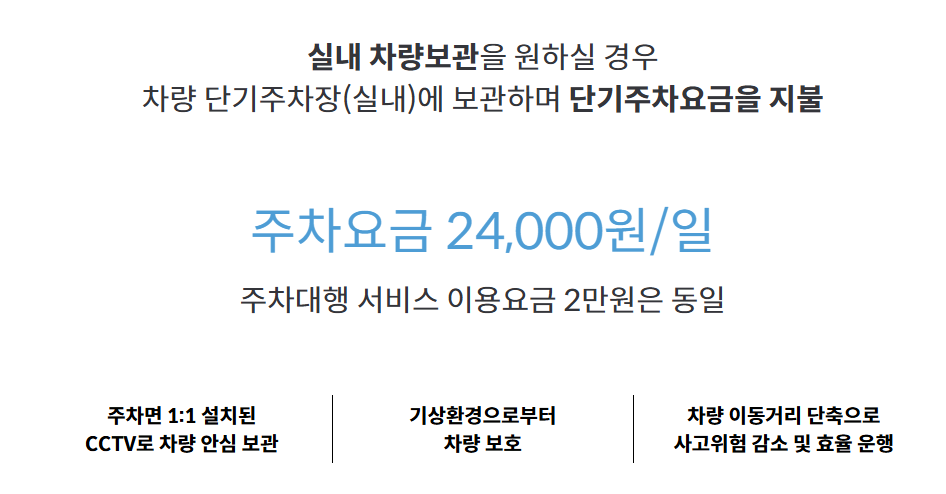 - 기본 주차대행 요금: 약 20,000원 ~ 30,000원 (업체별 상이)