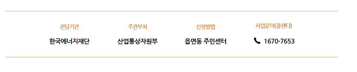 신청에 관한 문의 및 궁금증은 산업통상자원부 에너지정책관 에너지효율지원팀(☎ 044-203-5164) 또는 거주지 행정복지센터로 문의해 주시기 바랍니다!