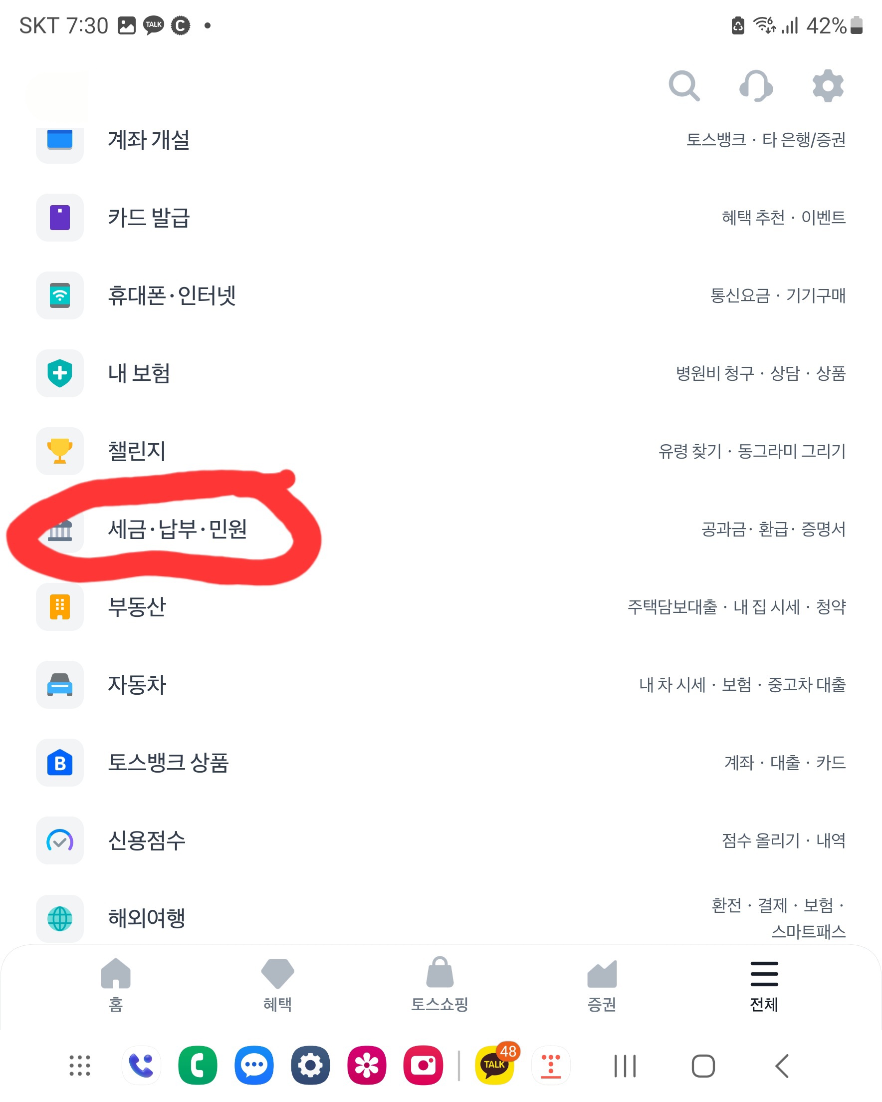 핸드폰의 토스 앱으로 들어가 아래 사진 순서대로 입장 하시면 손쉽게 찾으실 수 있습니다.