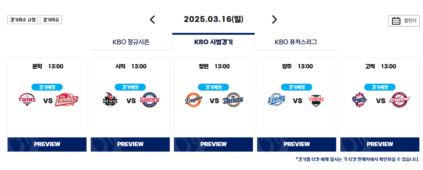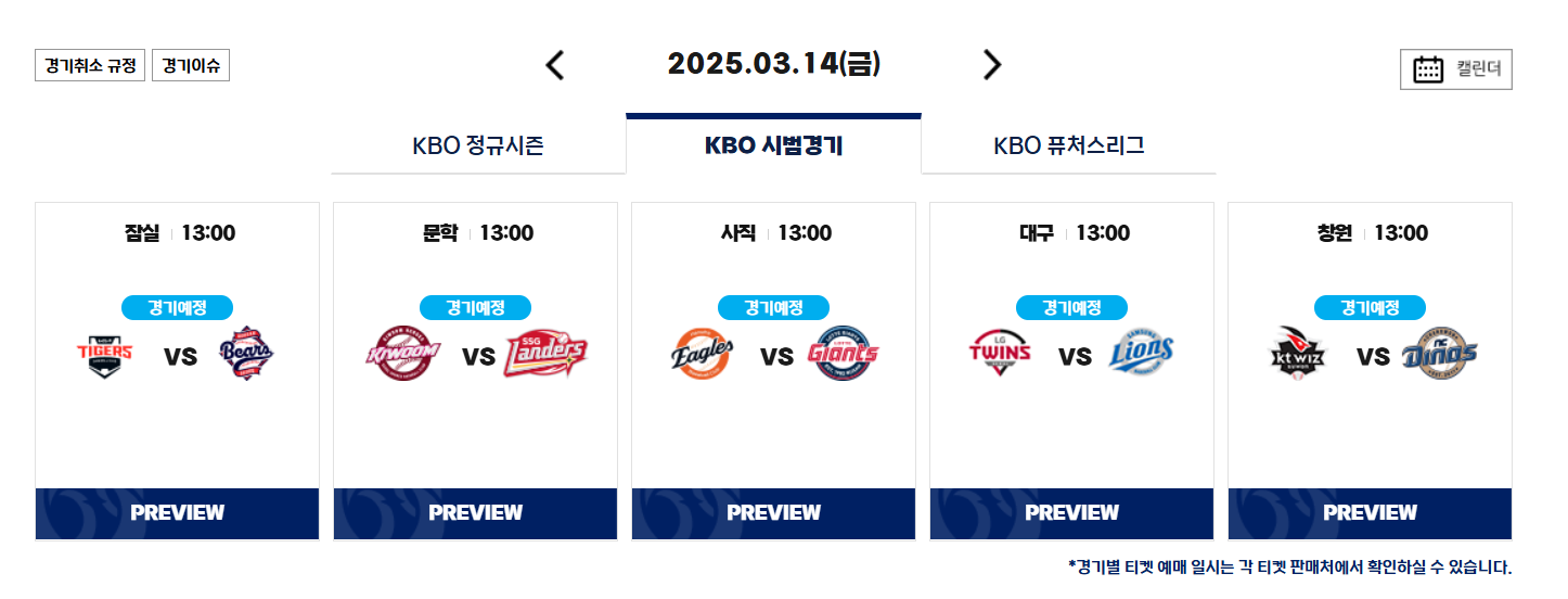 프로야구 시범경기 일정 !