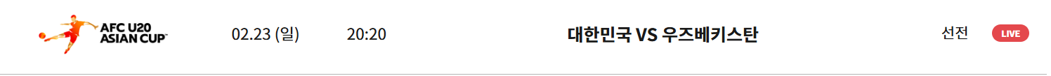 2025년 AFC U-20 아시안컵 8강전에서 대한민국은 오늘 2월 23일 오후 8시 30분에 우즈베키스탄과 맞붙습니다.