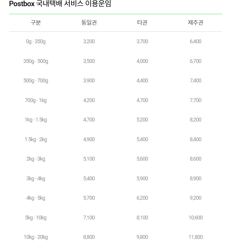 • 기본 요금은 약 3,200원부터 시작하며, 중량과 거리(지역)에 따라 달라집니다.