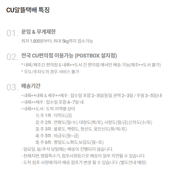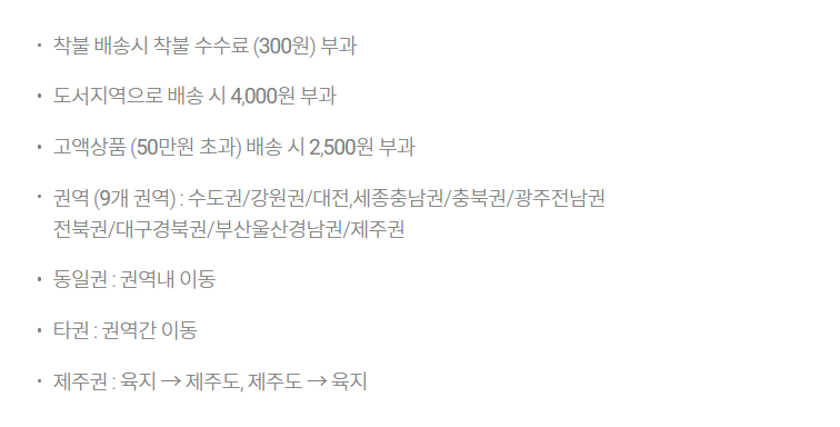 • 제주도·도서지역은 별도 추가 요금(약 4,000원)이 있으니 유의해야 합니다.